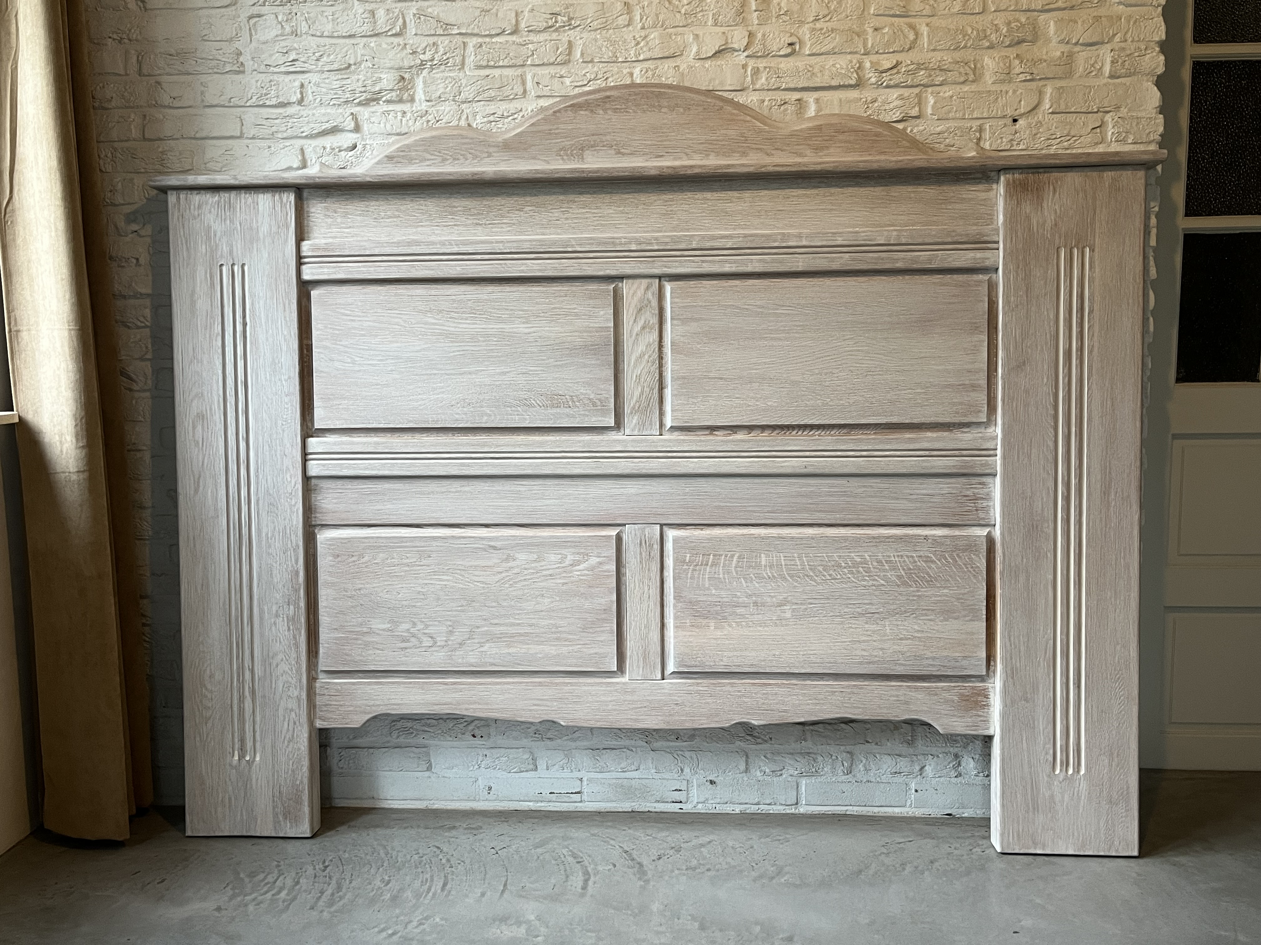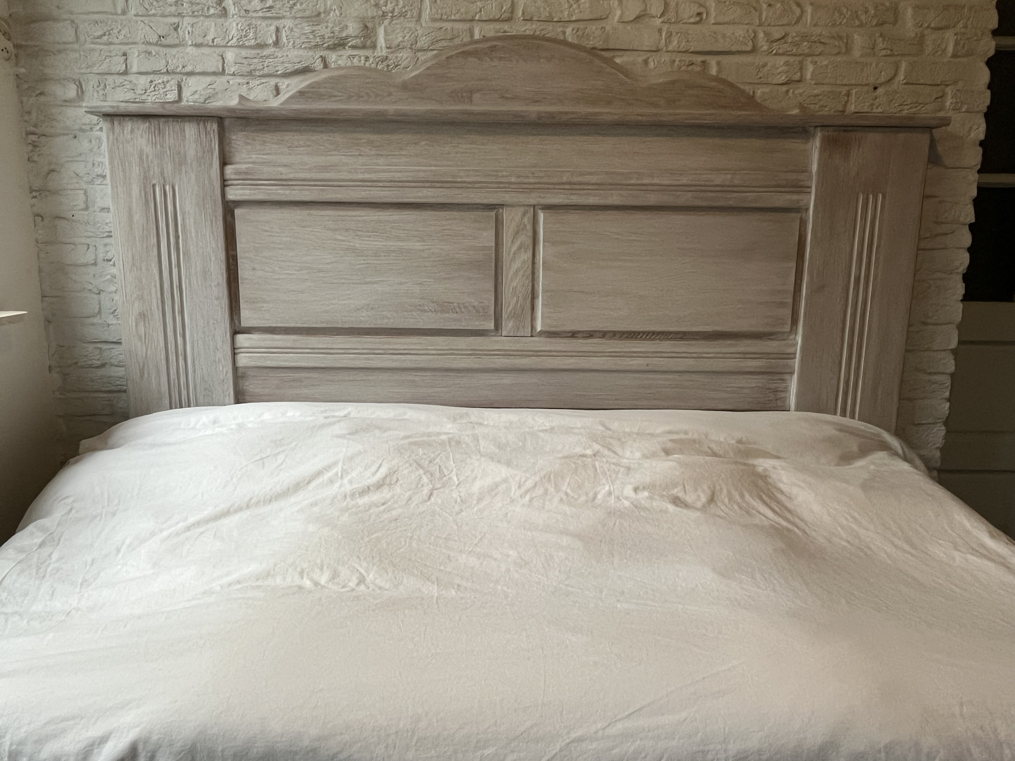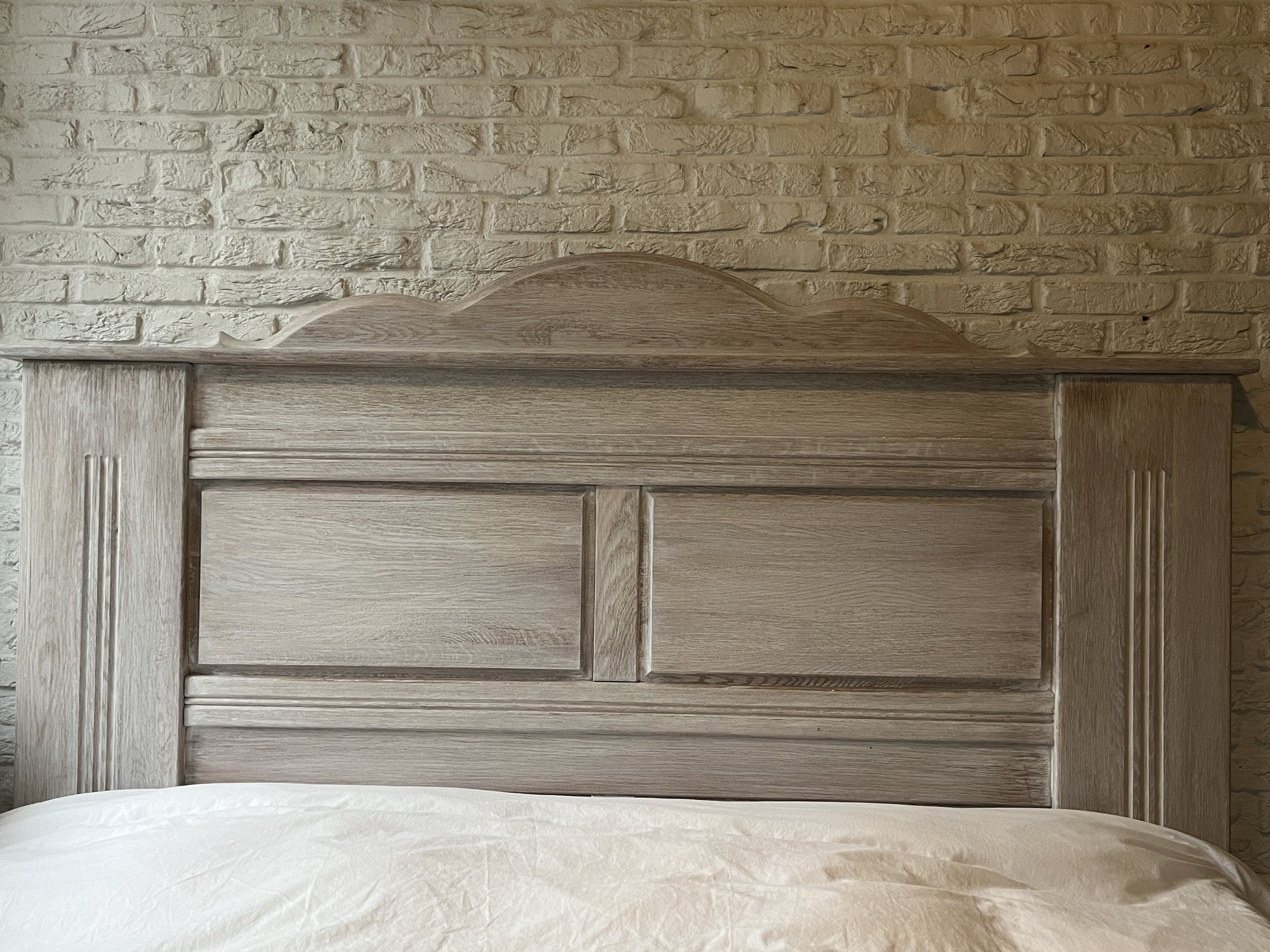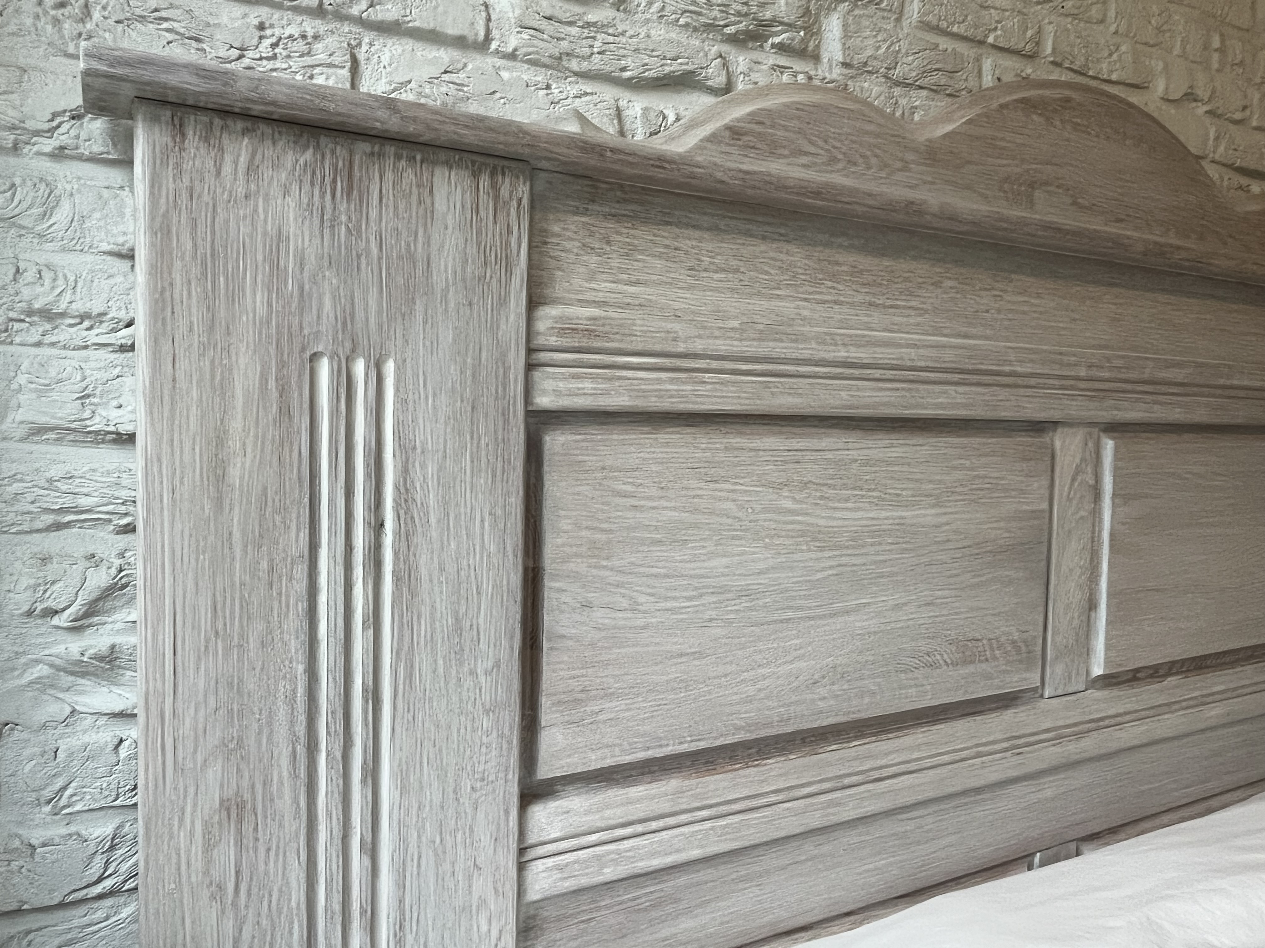 Een zeer stevig, stoer, massief eiken hoofdbord.