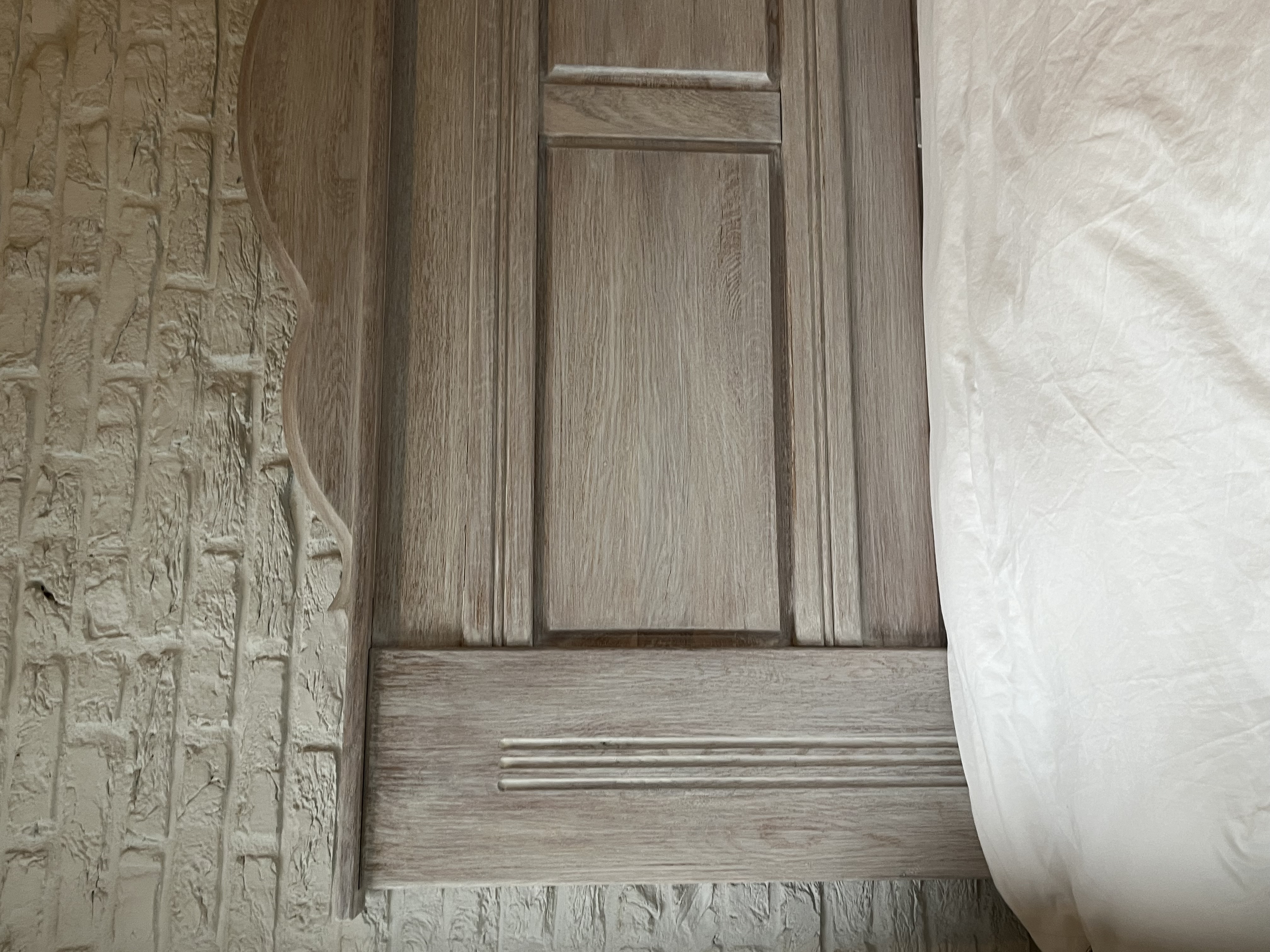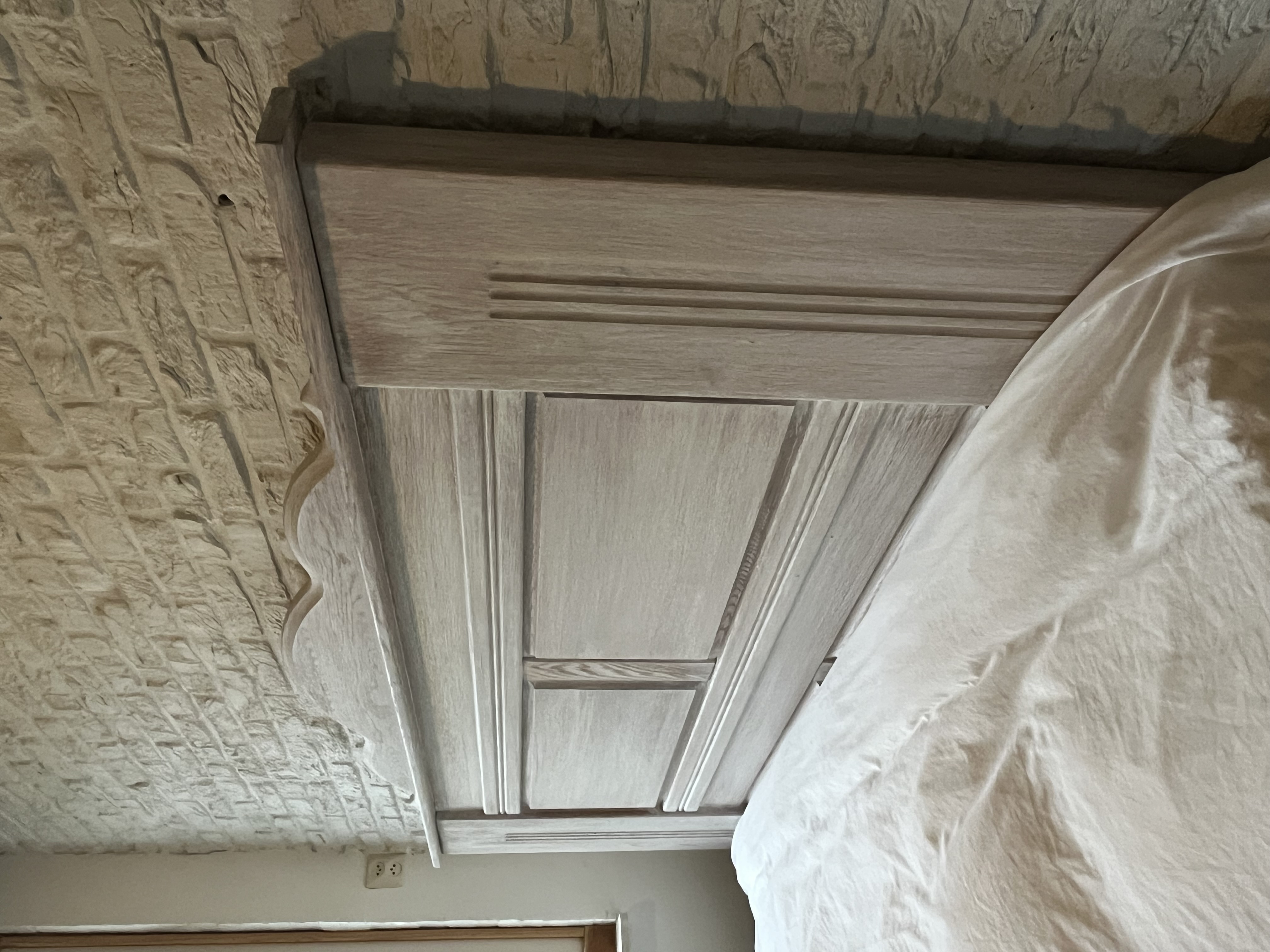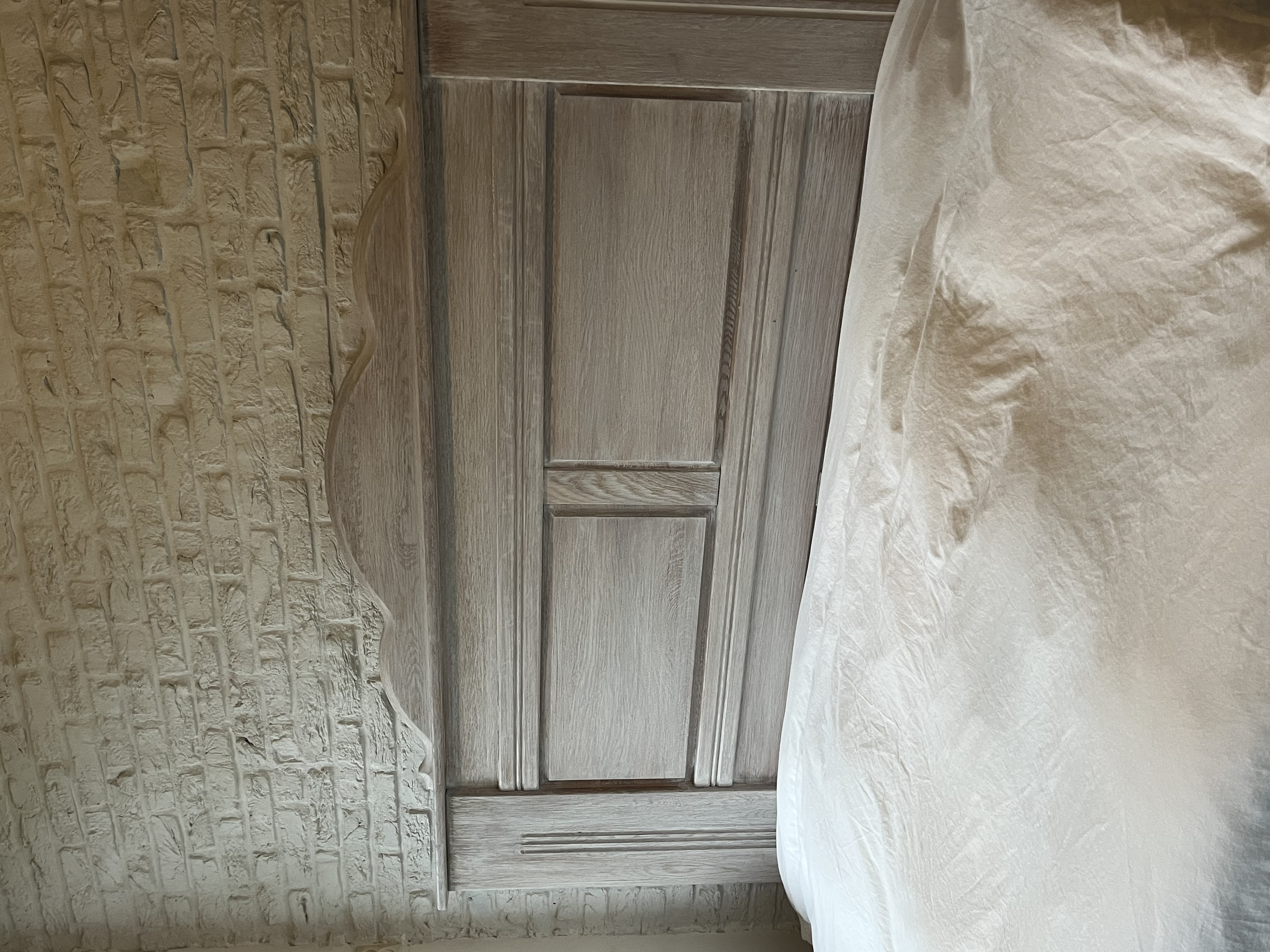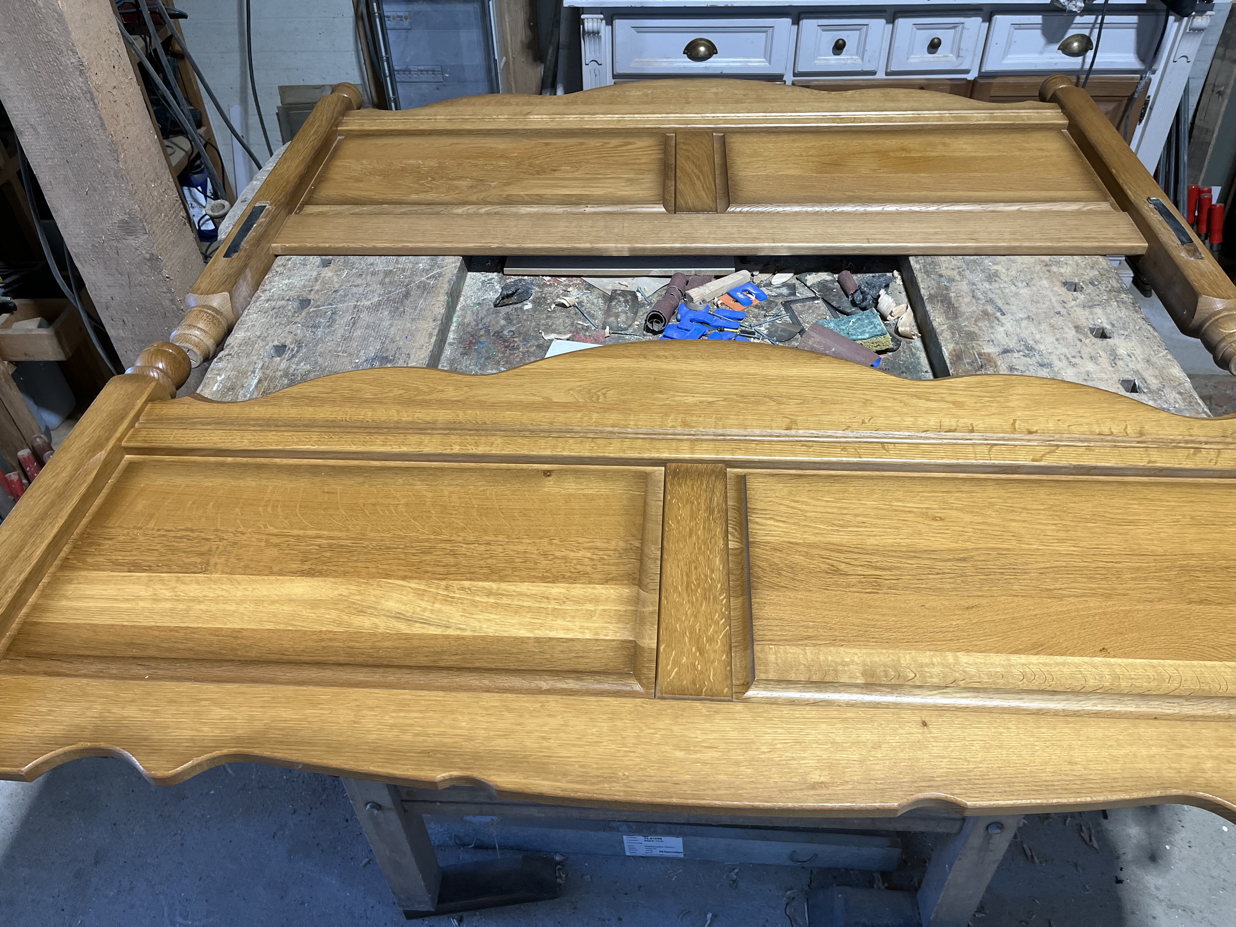 Een zeer stevig, stoer, massief eiken hoofdbord.