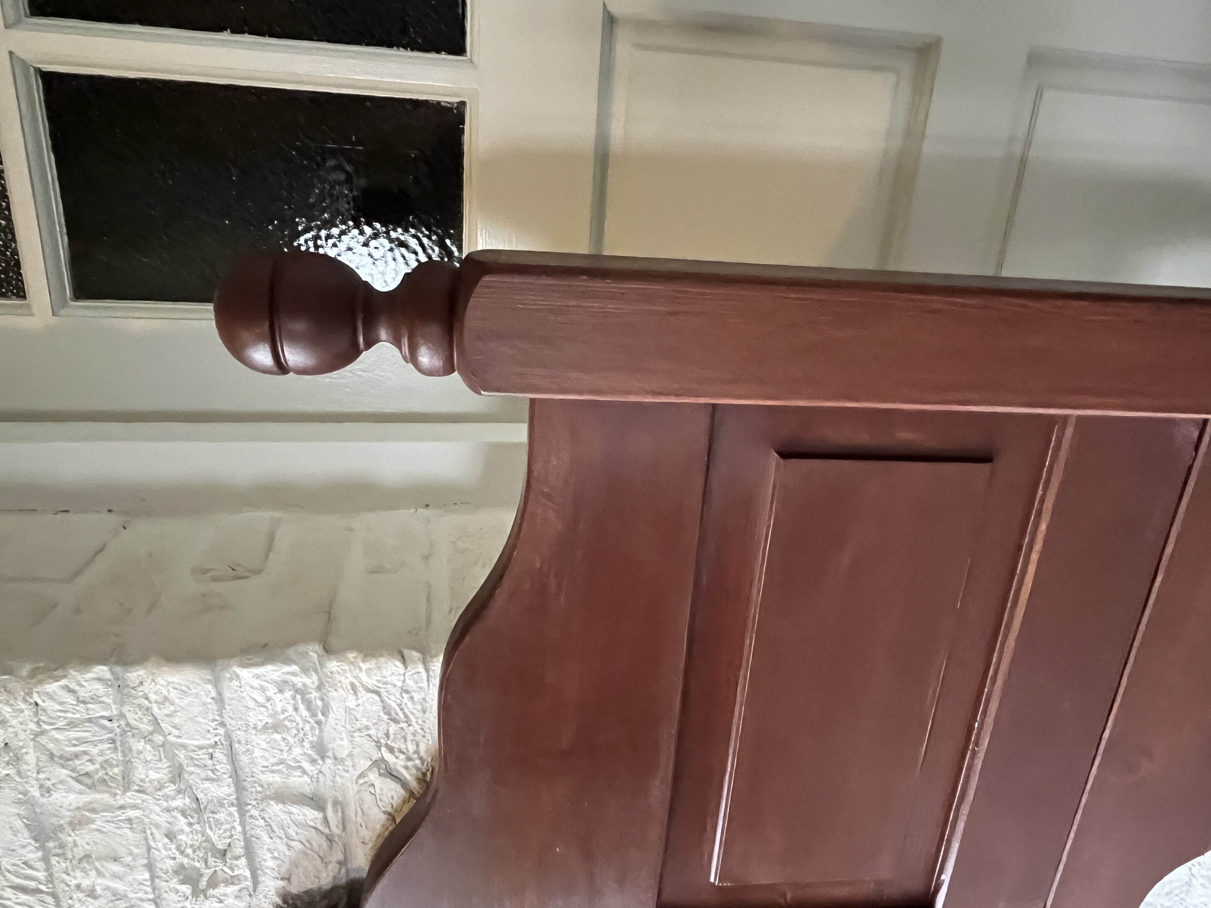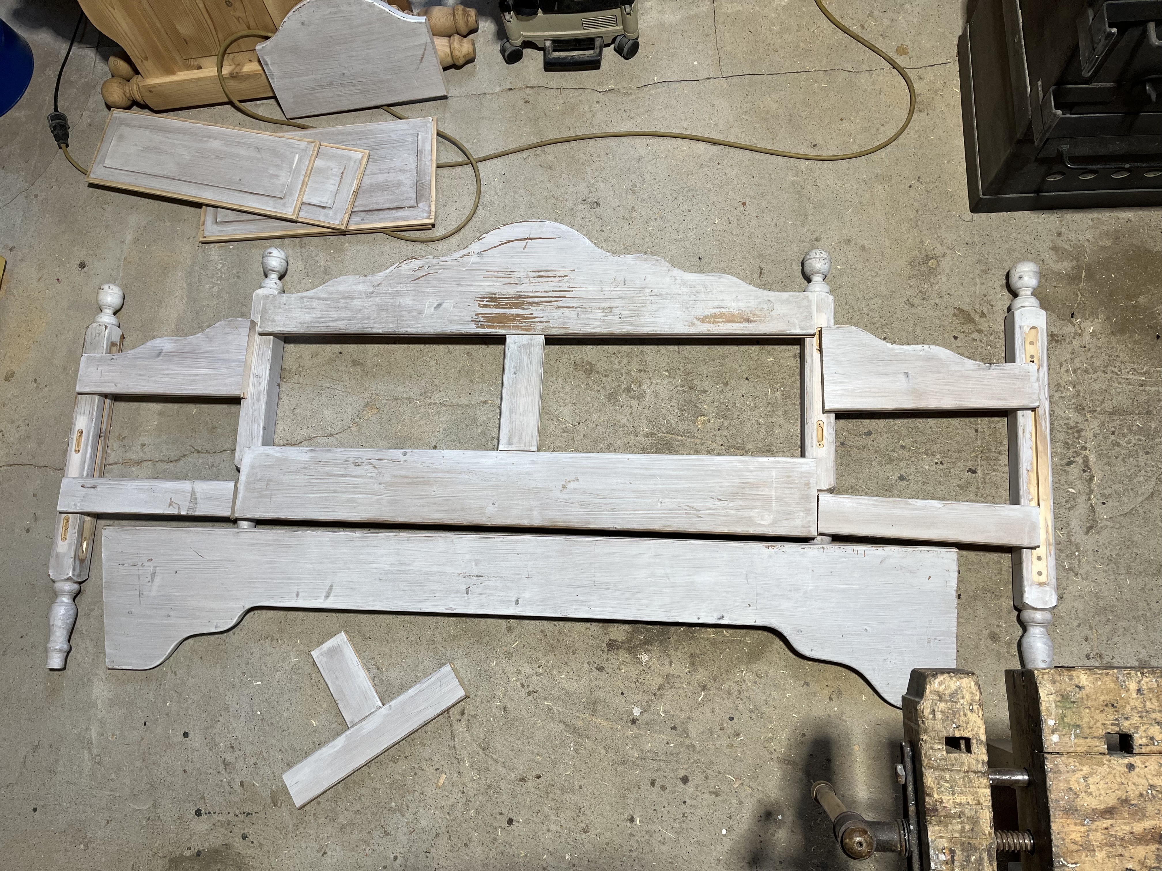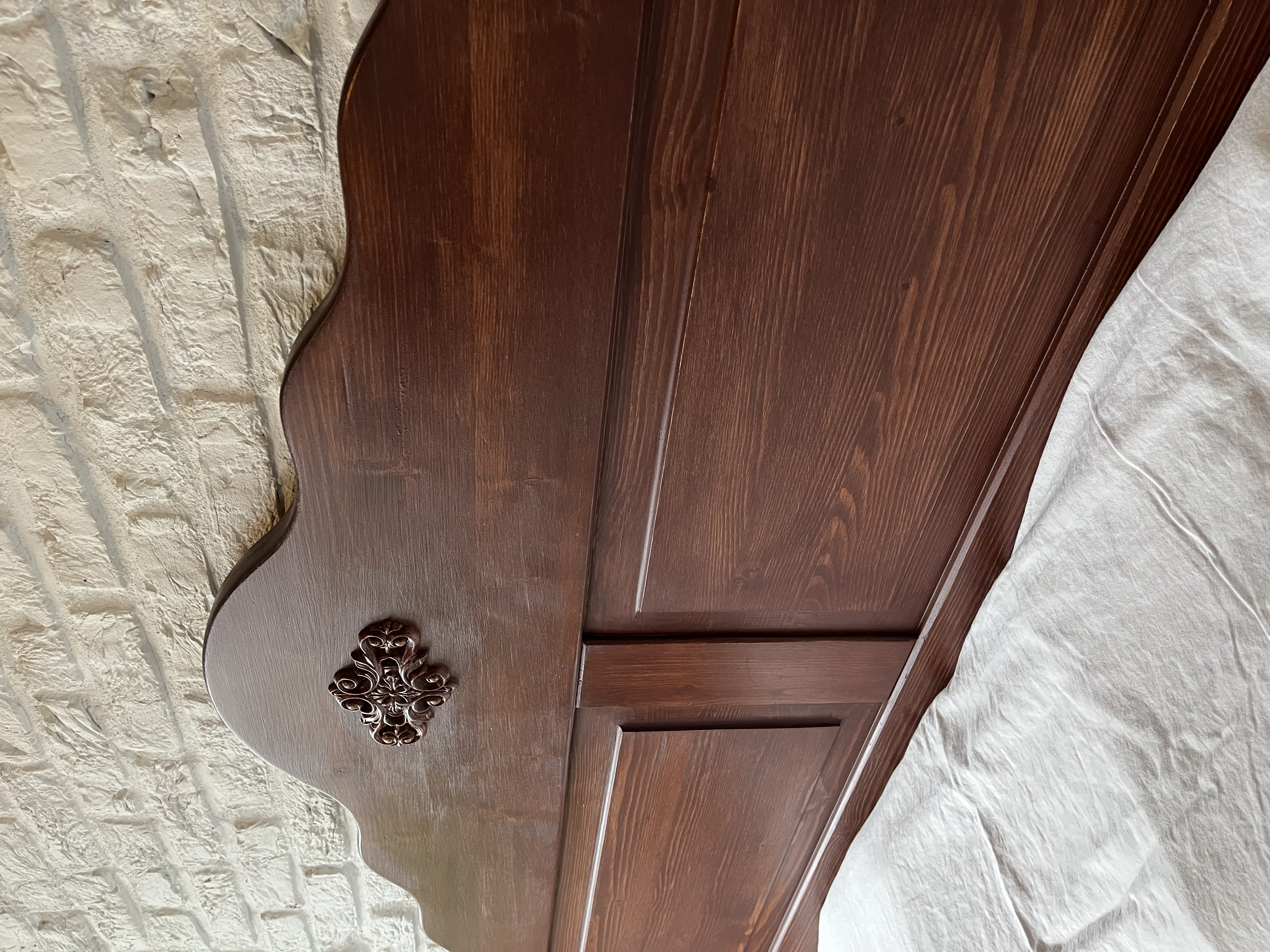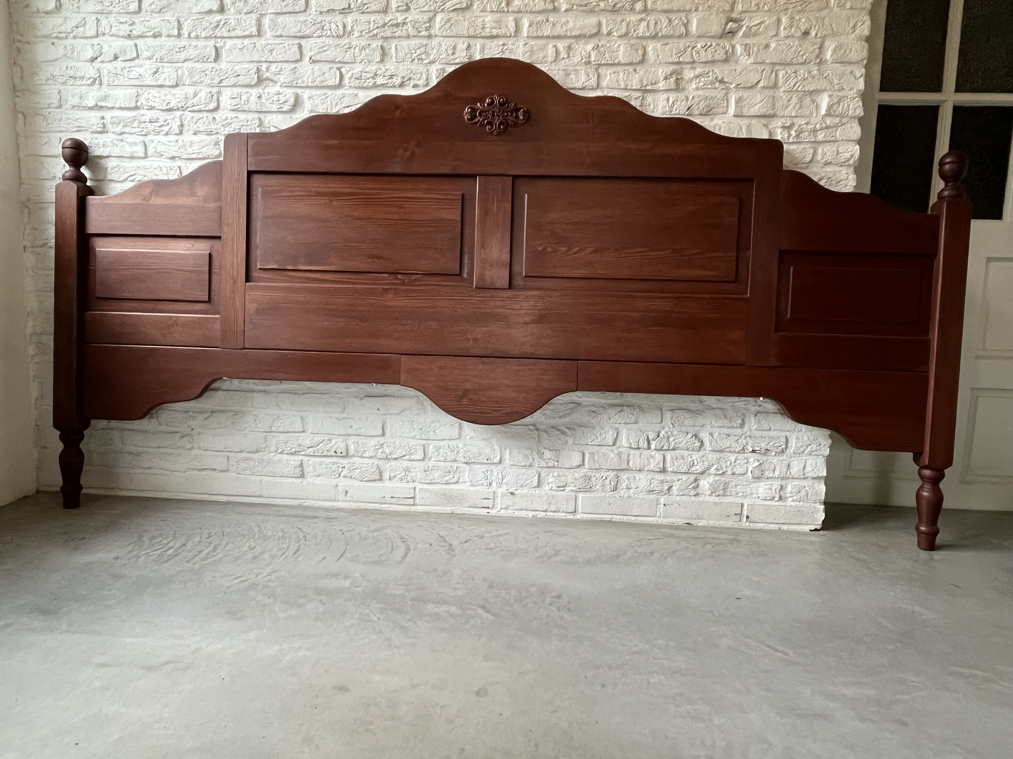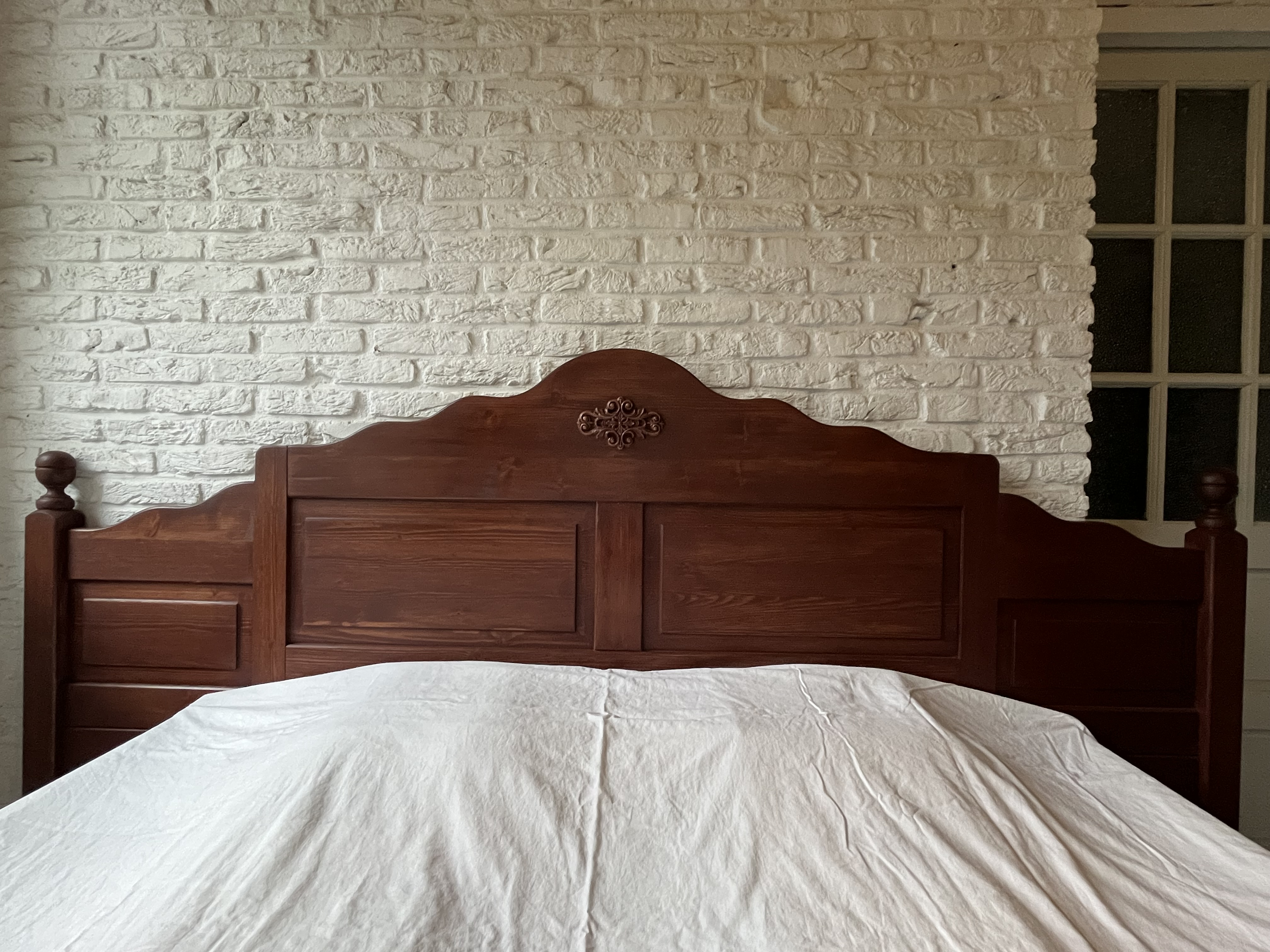 Een massief grenenhouten hoofdbord.
